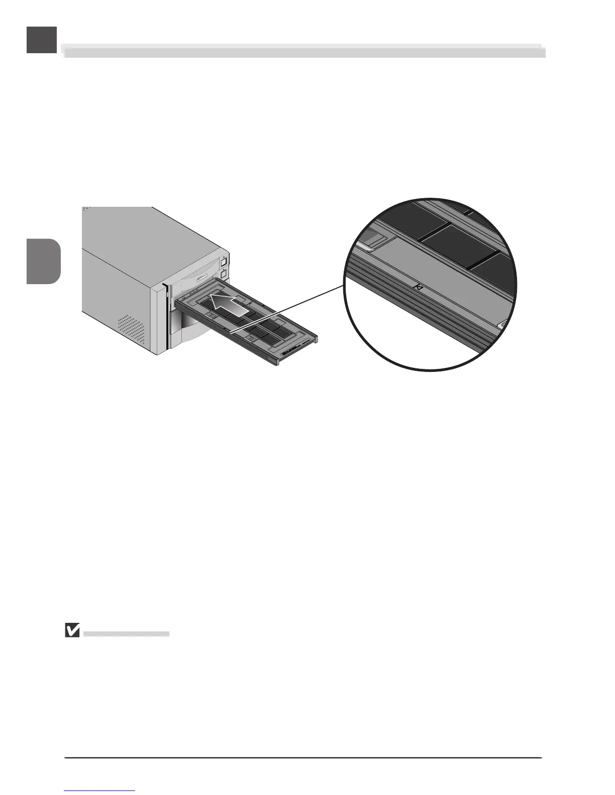 holder at an angle. Once the holder has been inserted as far as the insertion guide, the scanner’s
