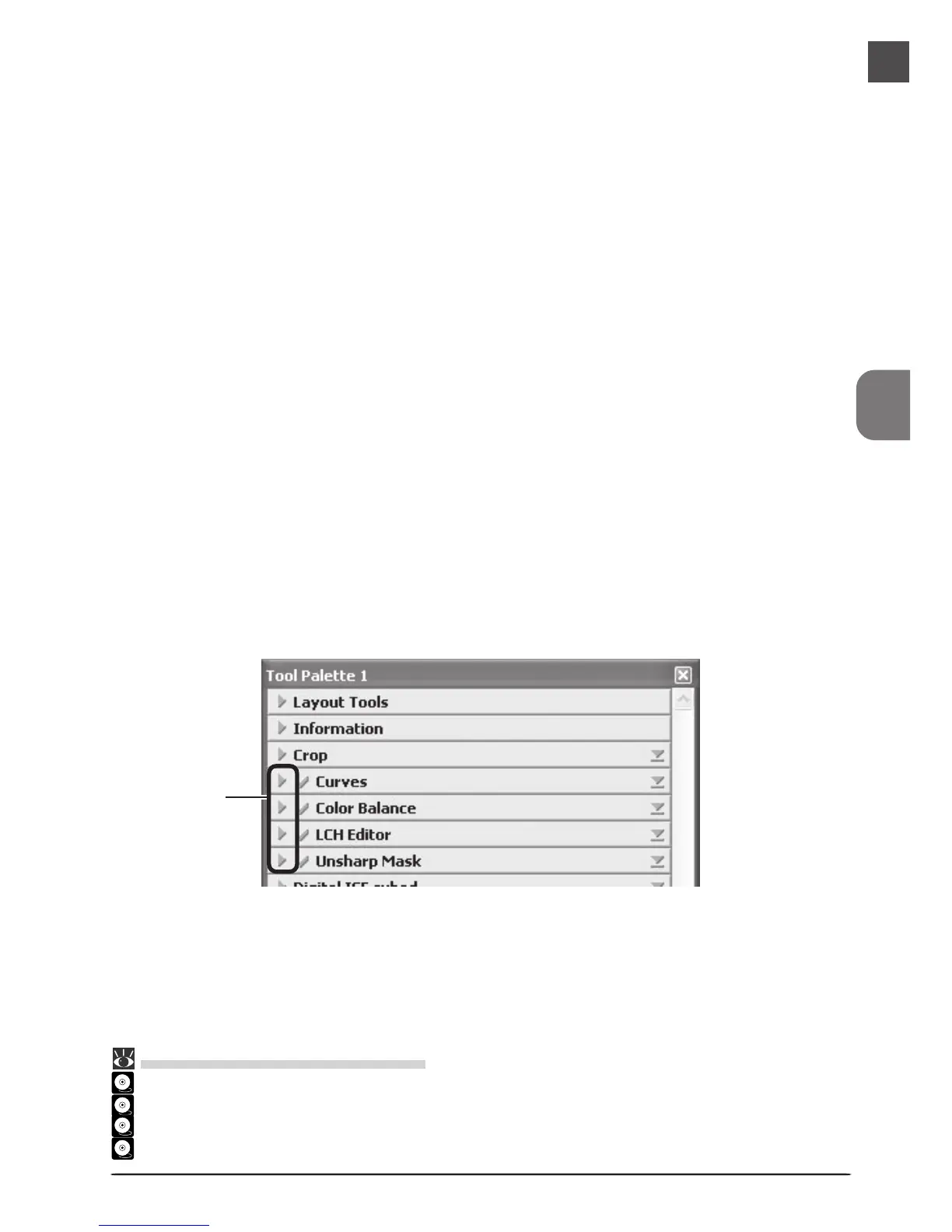 To open any of the above palettes, click the triangle at its top left corner.