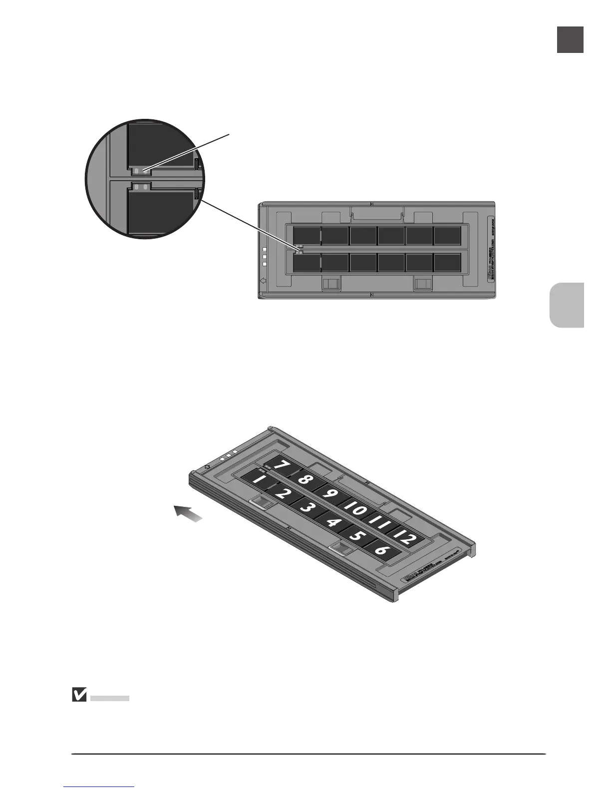 film perforations and adjust the position of the film so that the frames are aligned with the