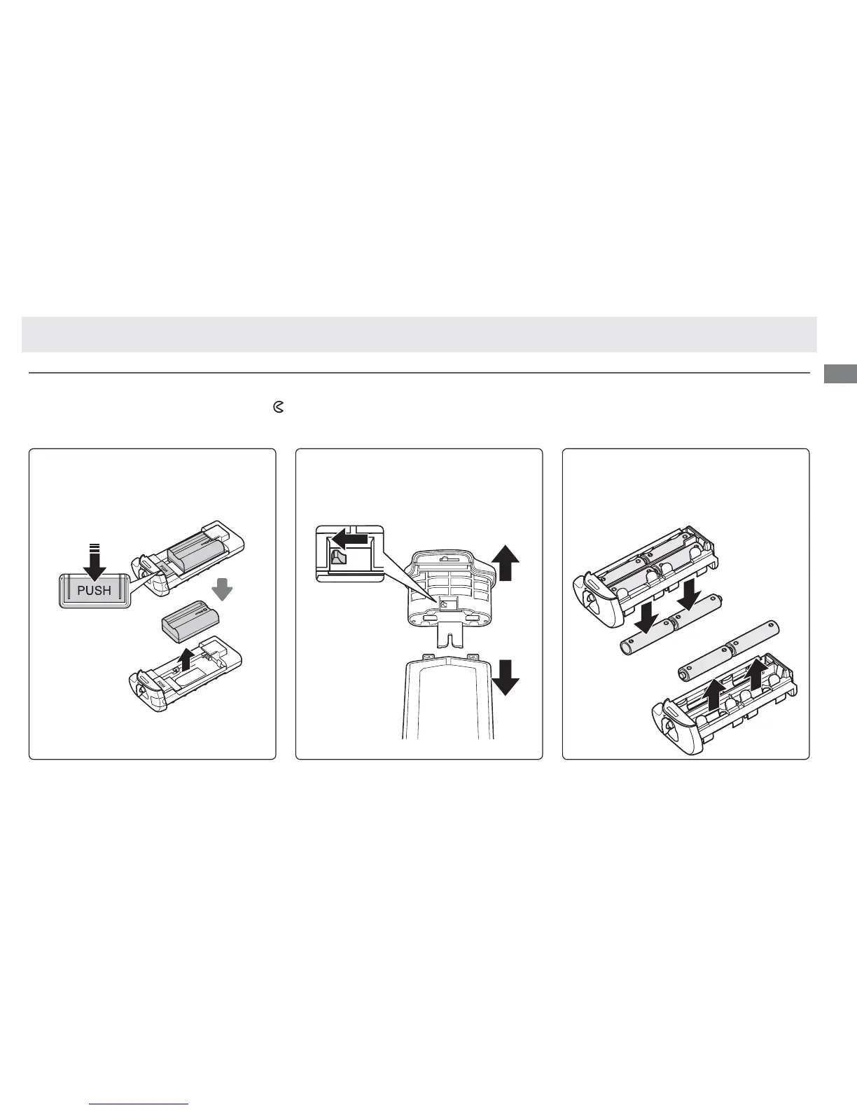 Remove the batteries as shown.