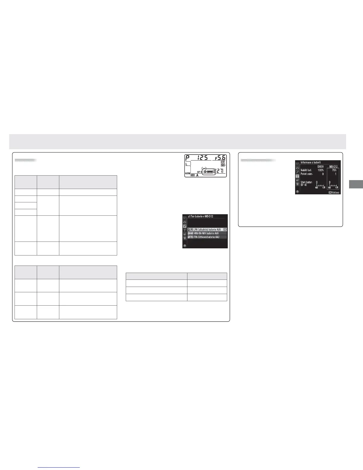 fotoaparátu je uvedena vlevo, baterie v MB-D12