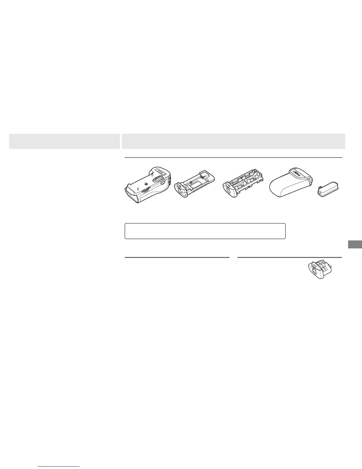 Patikrinkite, ar kartu su MB-D12 gavote šias dalis (baterijos parduodamos atskirai):