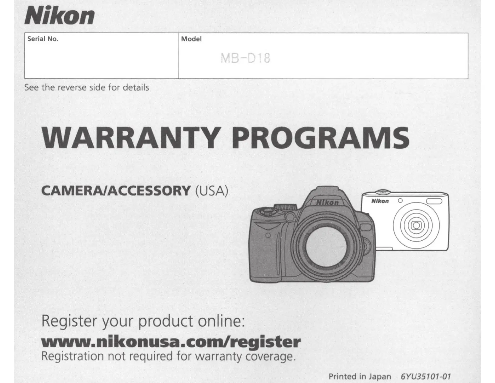 Nikon MB-D18 - Warranty Programs