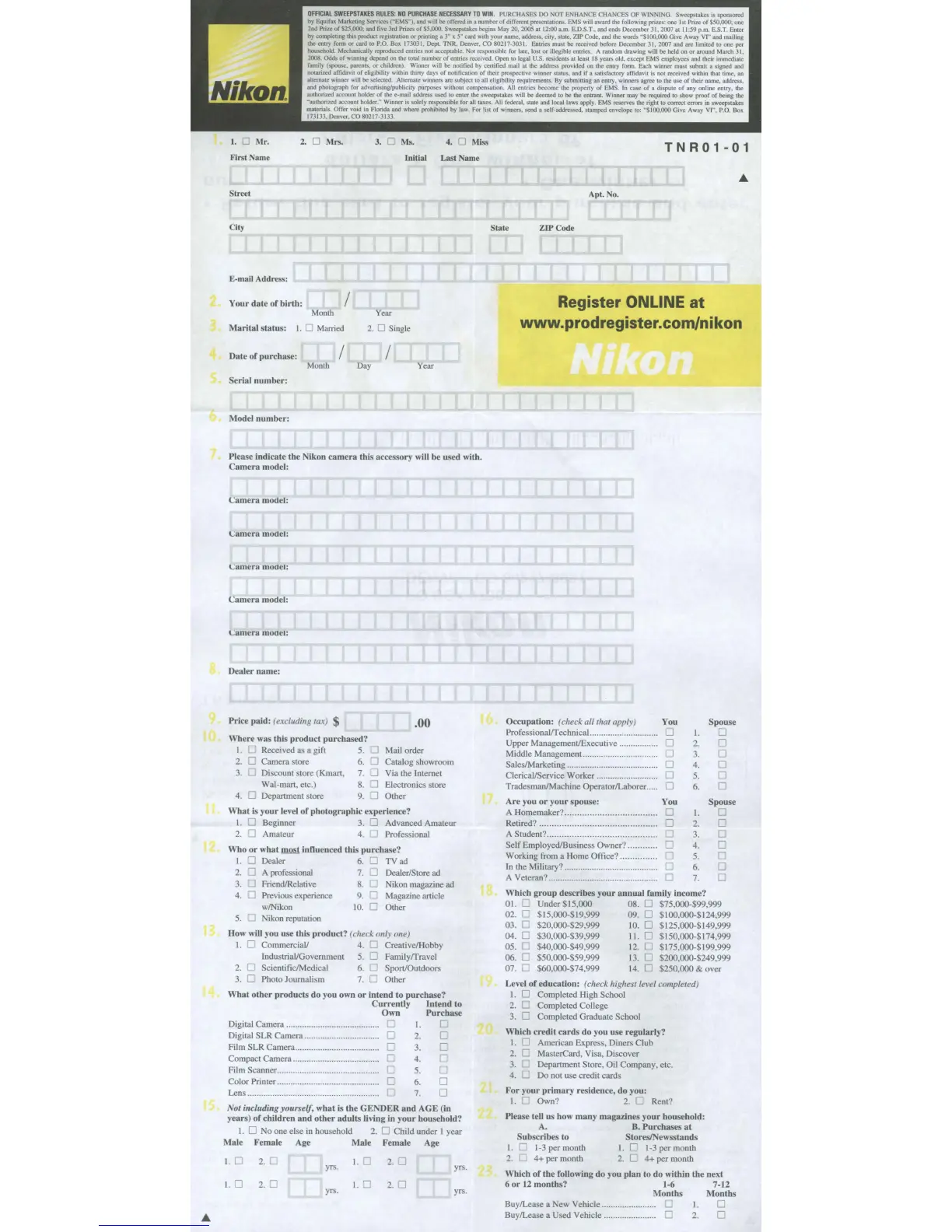 173031, Dept. TNR, Denver, CO 80217-3031. Entries must be received before Deeember