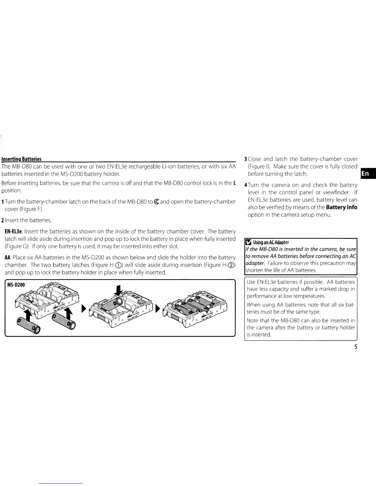 The MB-D80 can be used