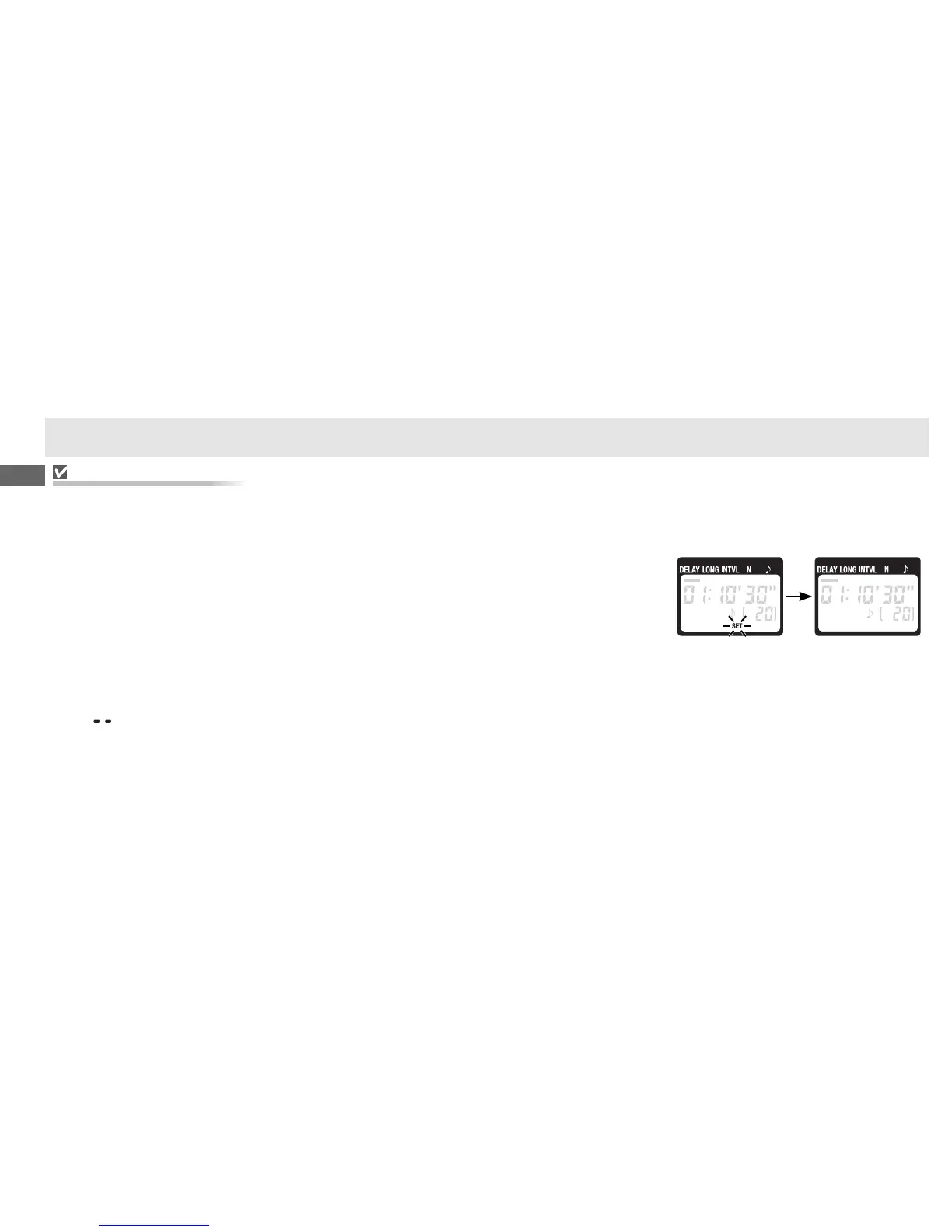 •タイマーを正しく作動させるために、「インターバル」は必ず、「露光時間」より 1 秒以上長く