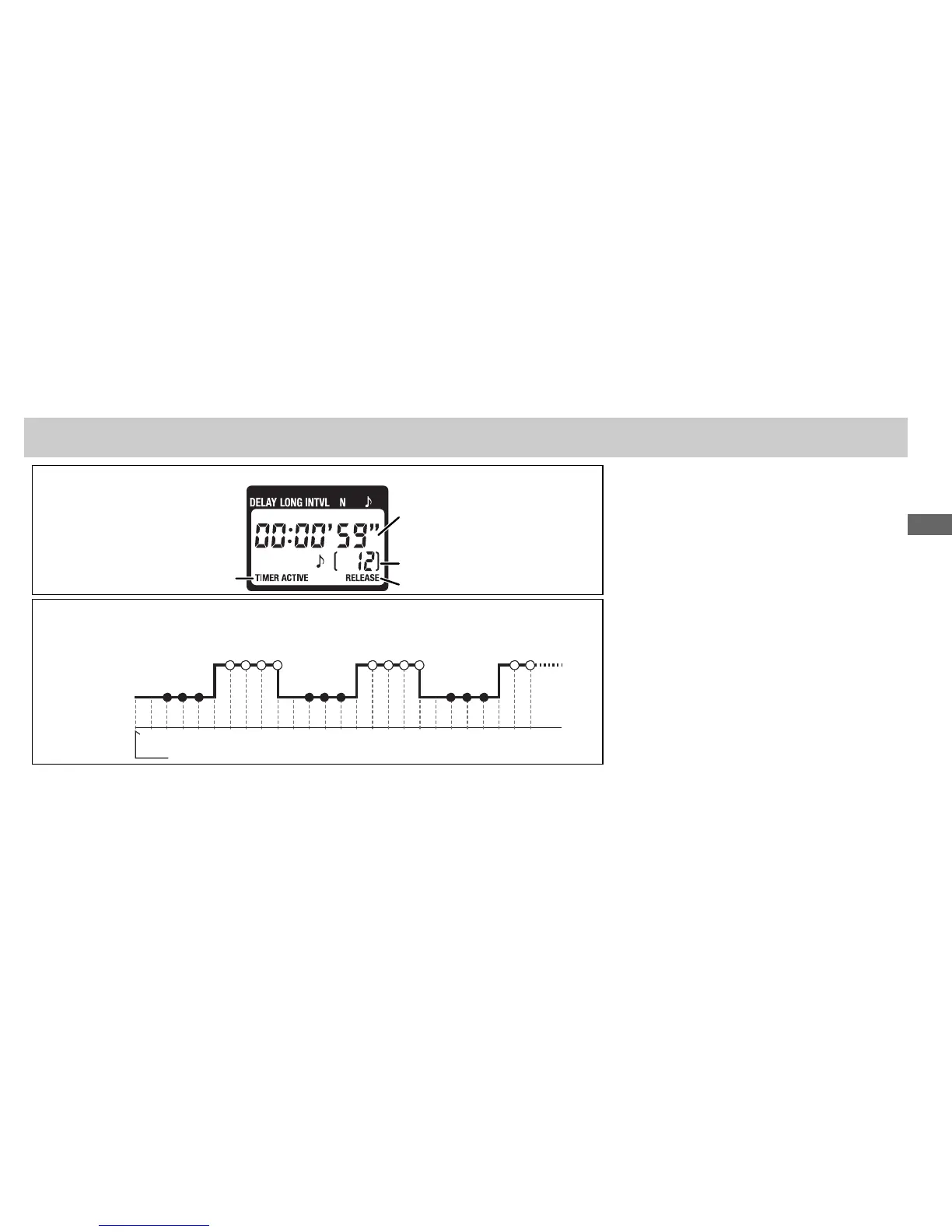 Die folgende Abbildung zeigt, wann ein akustisches Signal ertönt (●) und die Auslöser-Blinkleuchte (
