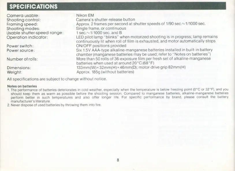 rolls of 36-exposure film per fresh set of alkaline-manganese