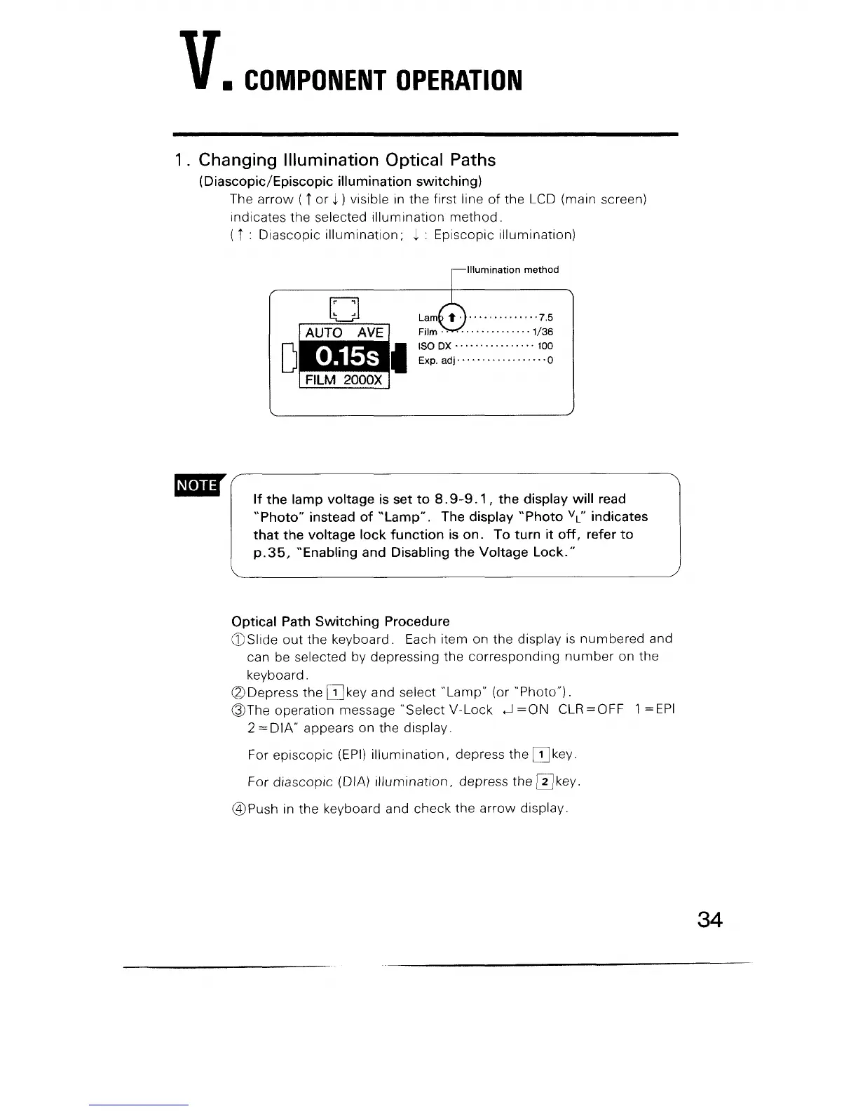 Nikon Microphot-FXA - Component Operation; Changing Illumination Optical Paths; Optical Path Switching Procedure