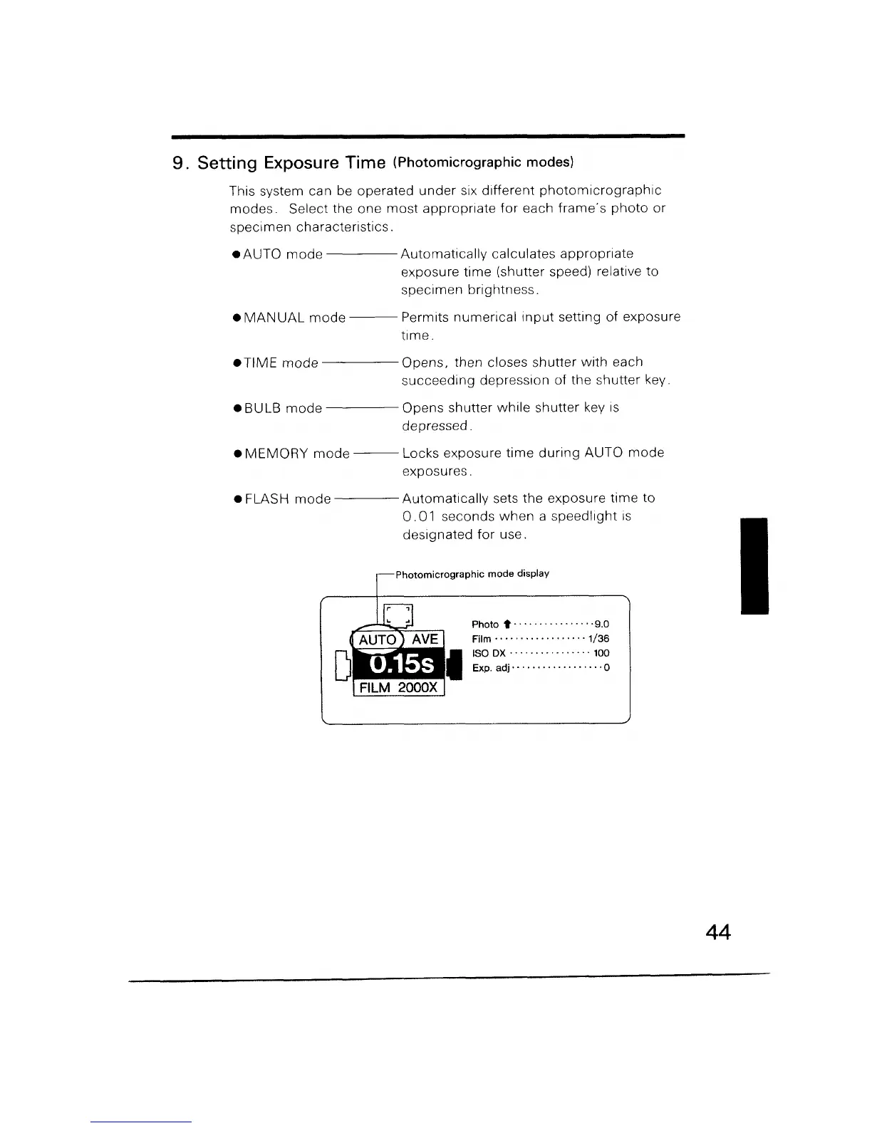 Nikon Microphot-FXA - Setting Exposure Time - Photomicrographic Modes