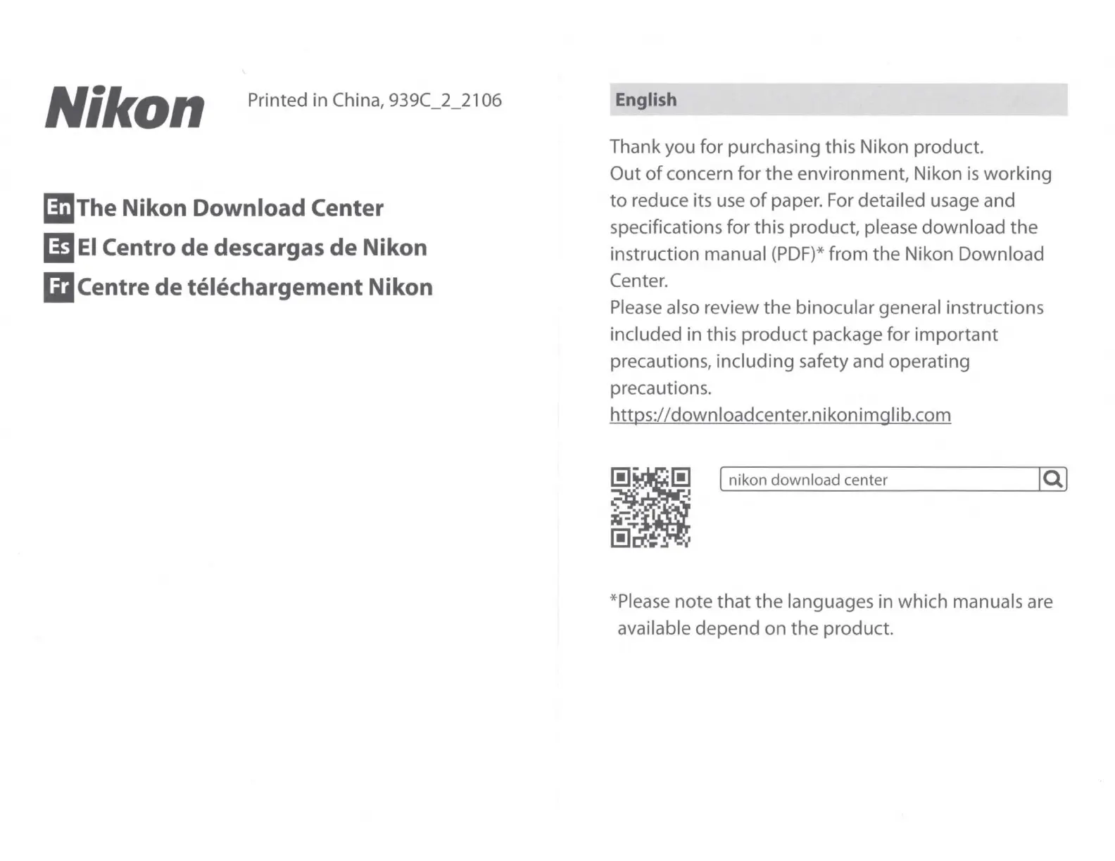 Thank you for purchasing this Nikon product.