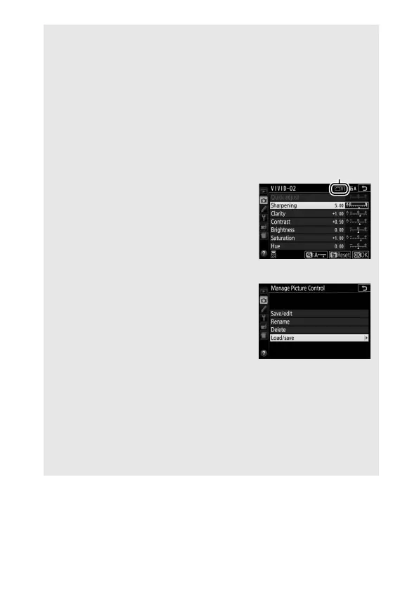 • Copy to camera: Copy custom Picture Controls from the memory card to