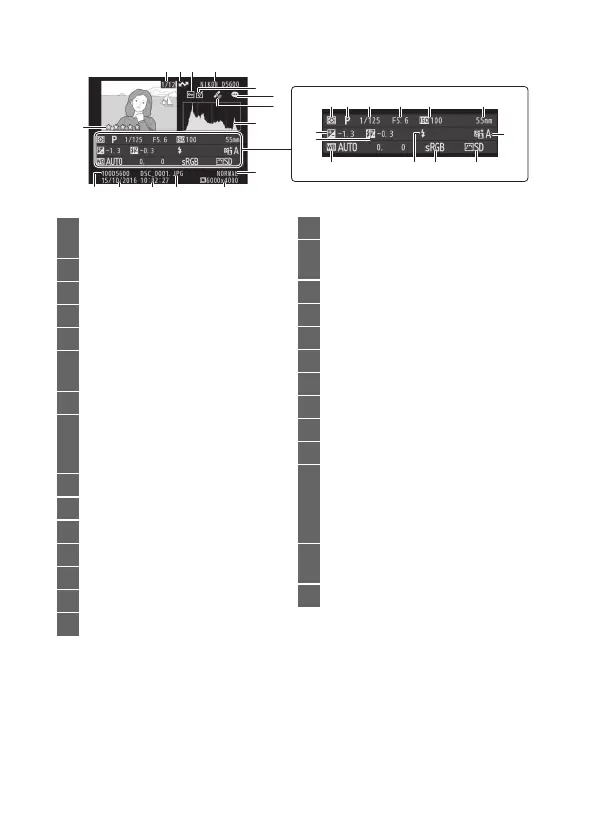1 Displayed in red if photo was taken with ISO sensitivity auto control on.