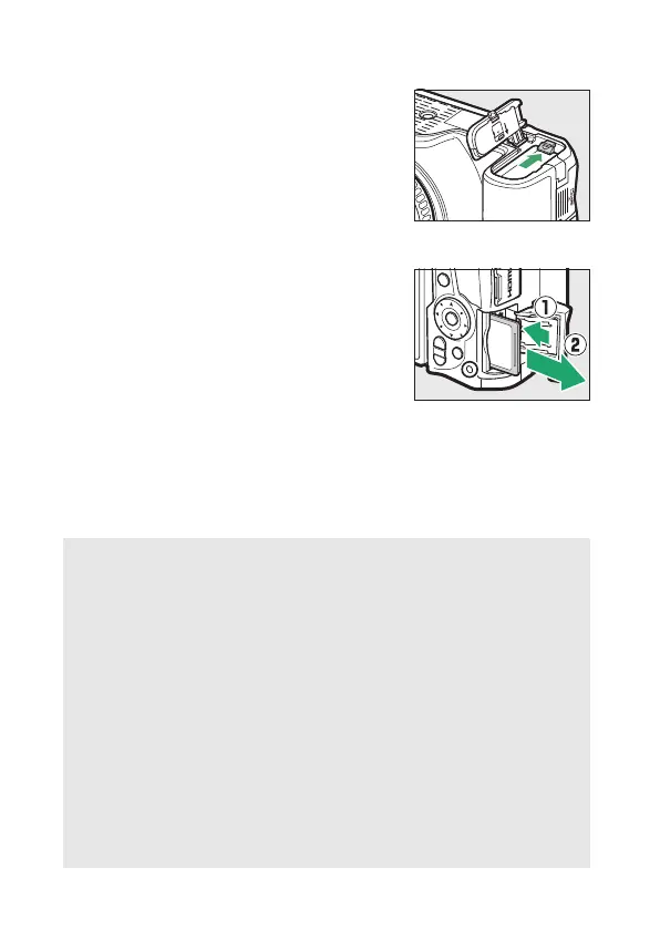 ❚❚ Removing the Battery and Memory Cards