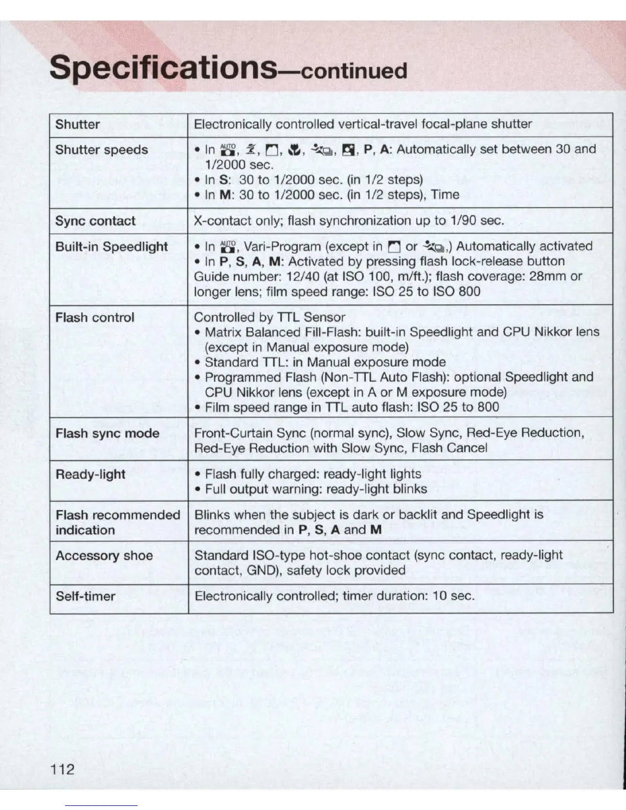 -Flash: built-in Speedlight and CPU Nikkor lens
