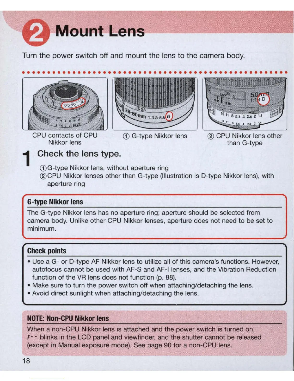 Manual exposure mode). See page 90 for a non-CPU lens.