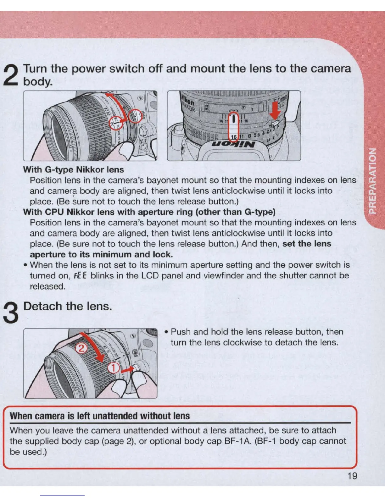 and camera body are aligned, then twist lens anticlockwise until it locks into