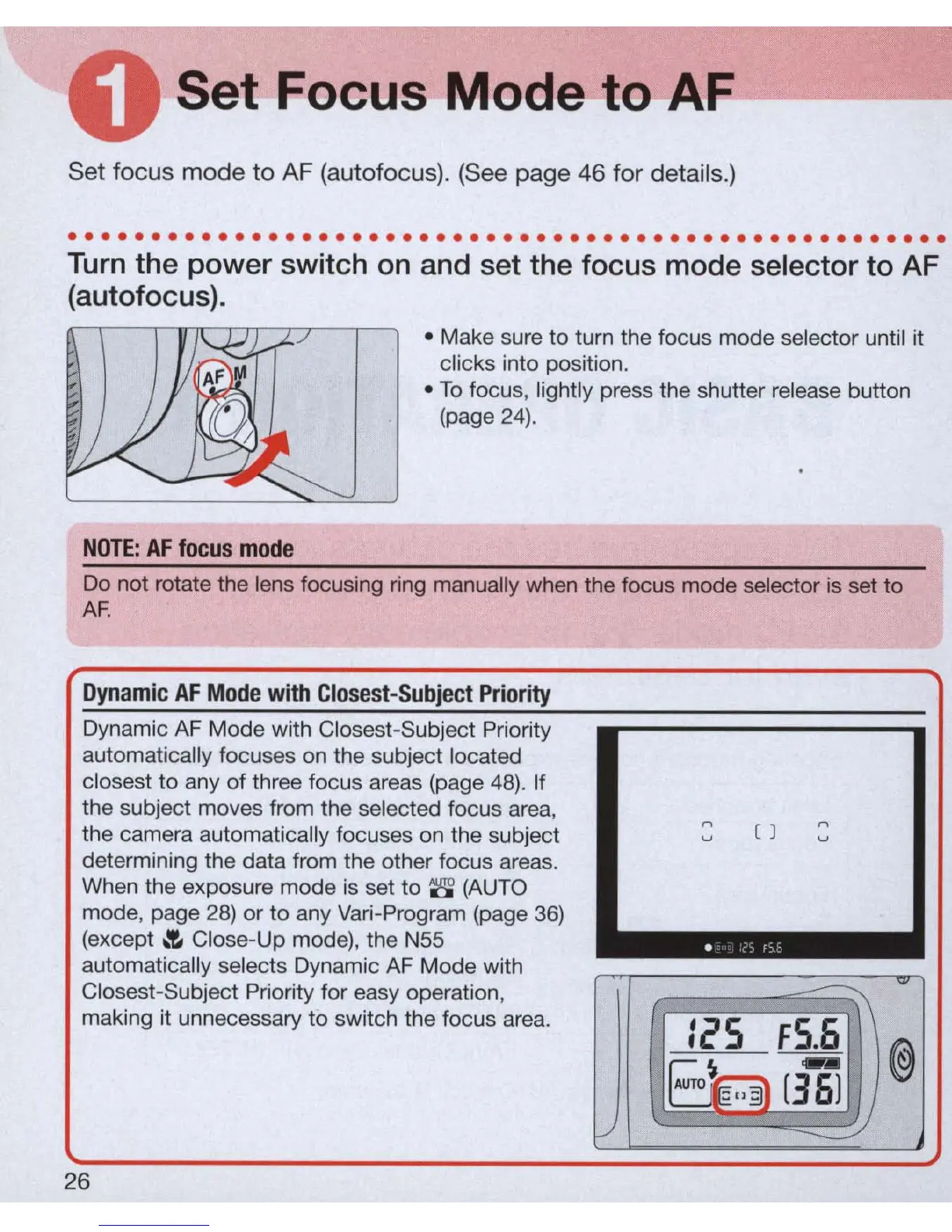 and set the focus mode selector to AF