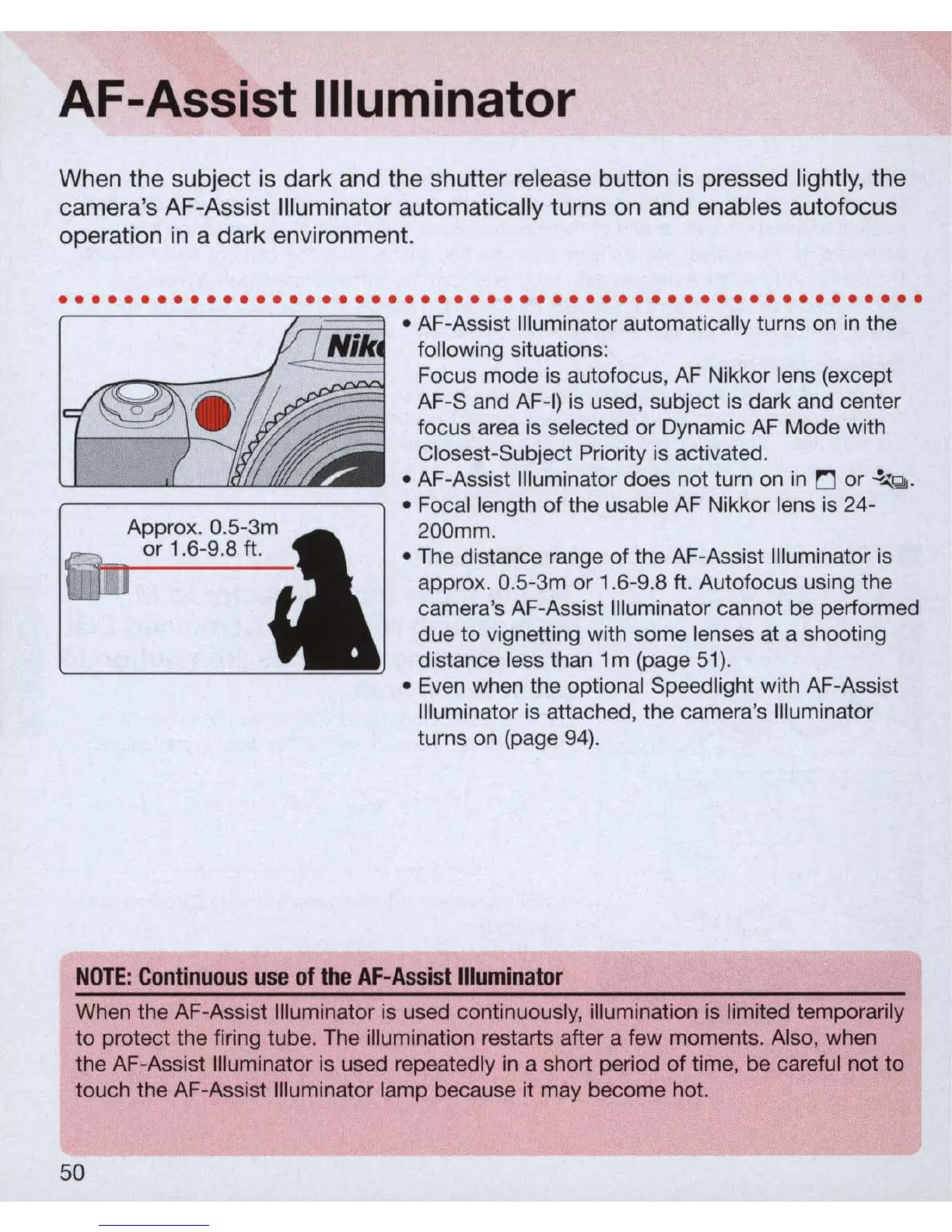 When the AF-Assist Illuminator is used continuously, illumination is limited temporarily