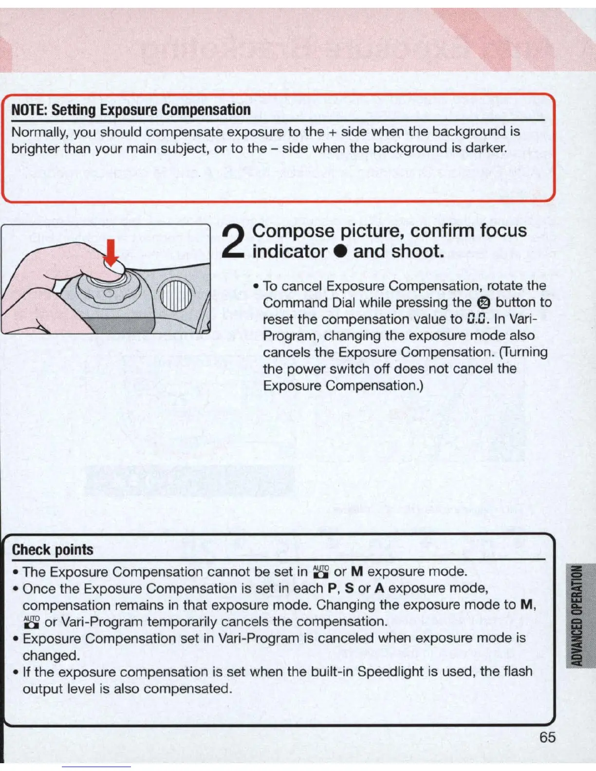 • If the exposure compensation is set when the built-in SpeedJight is used, the flash