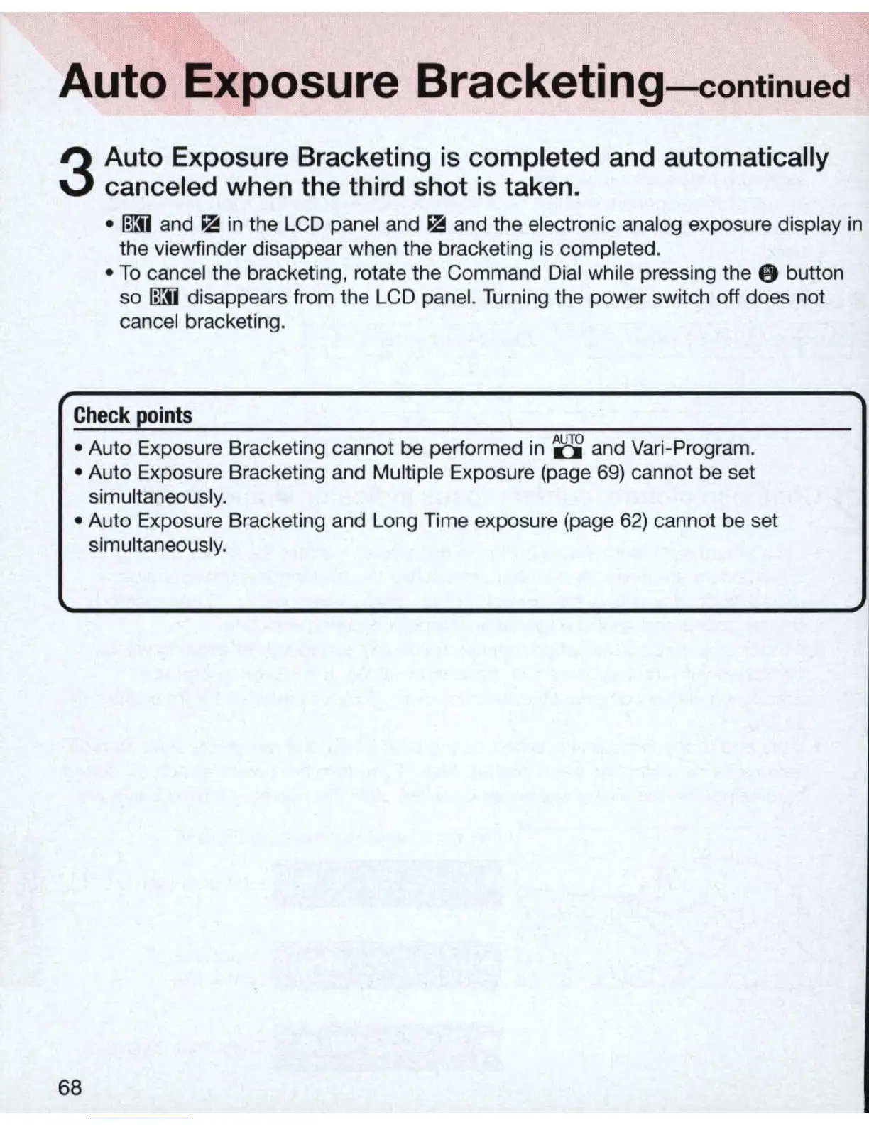 • Auto Exposure Bracketing cannot be performed