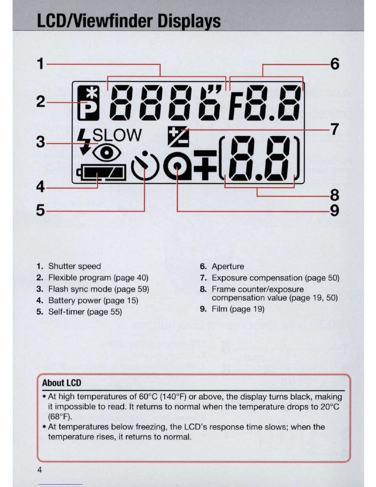 3. Flash sync mode (page 59) 8. Frame counter/exposure