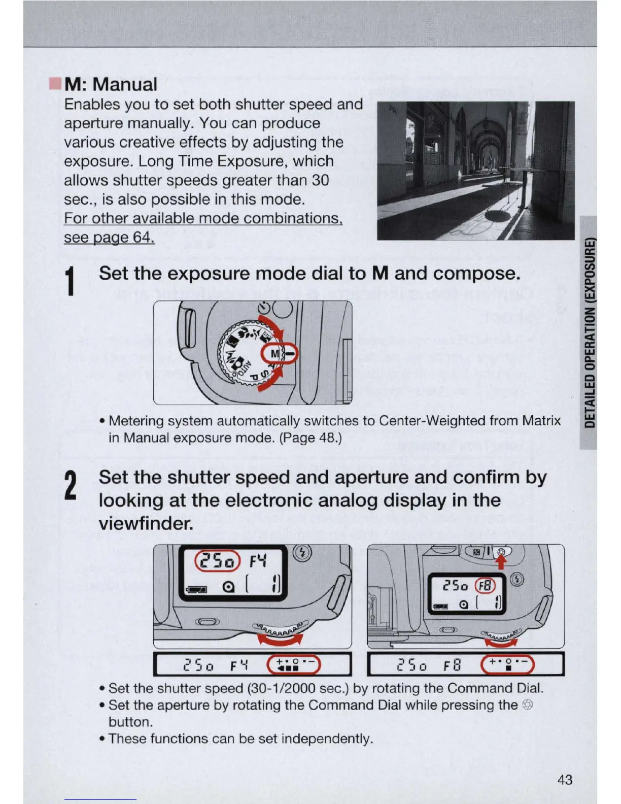 Manual exposure mode. (Page 48.)