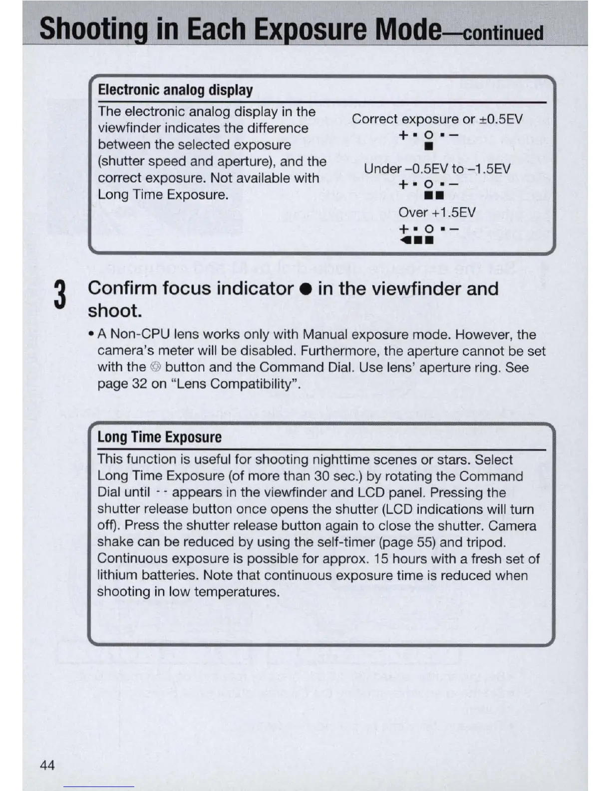 • A Non-CPU lens works only with Manual exposure mode. However, the