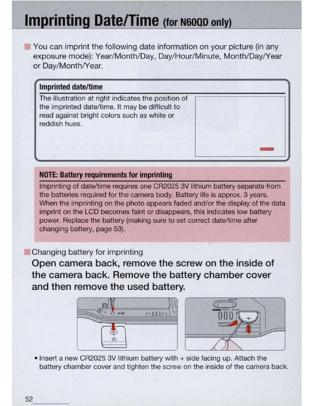 Imprinting of date/time requires one CR2025