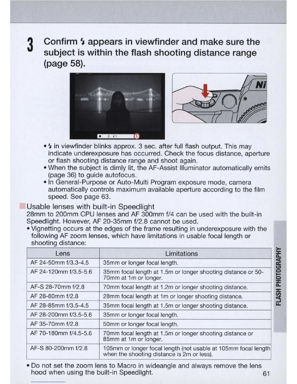 within the flash shooting distance range