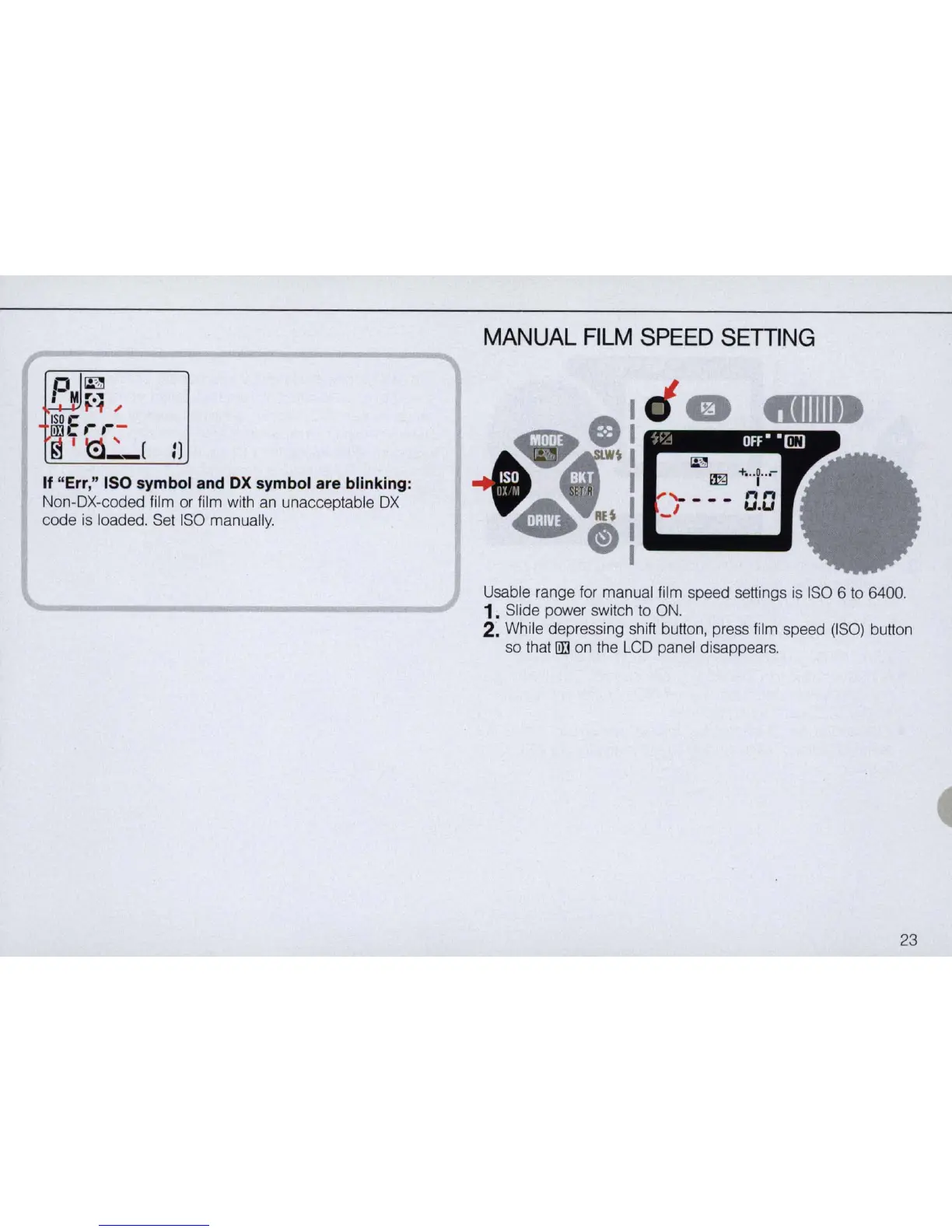 Usable range for manual film speed settings