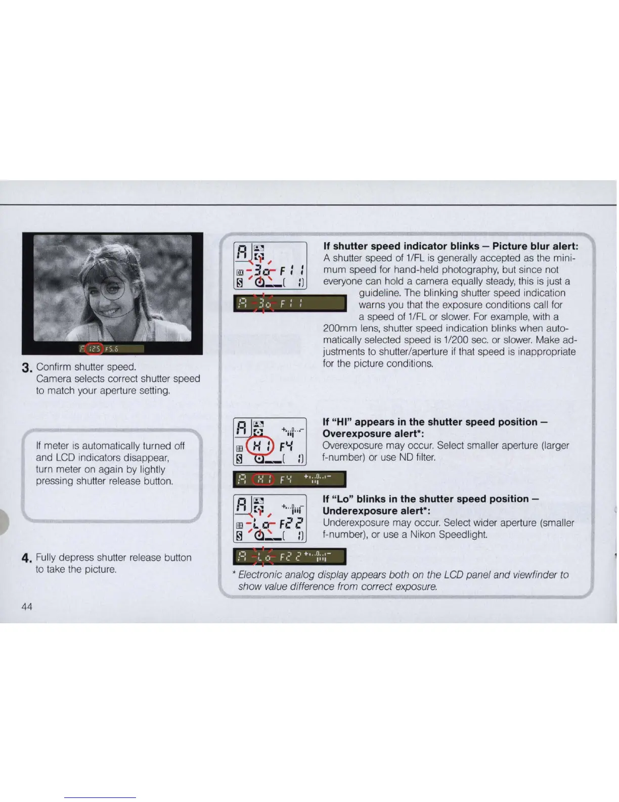 • Electronic analog display appears both on the LCD panel and viewfinder to