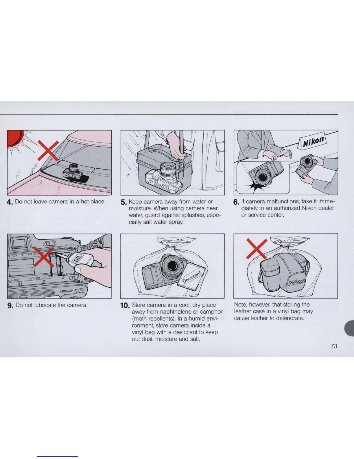 9. Do not lubricate the camera.