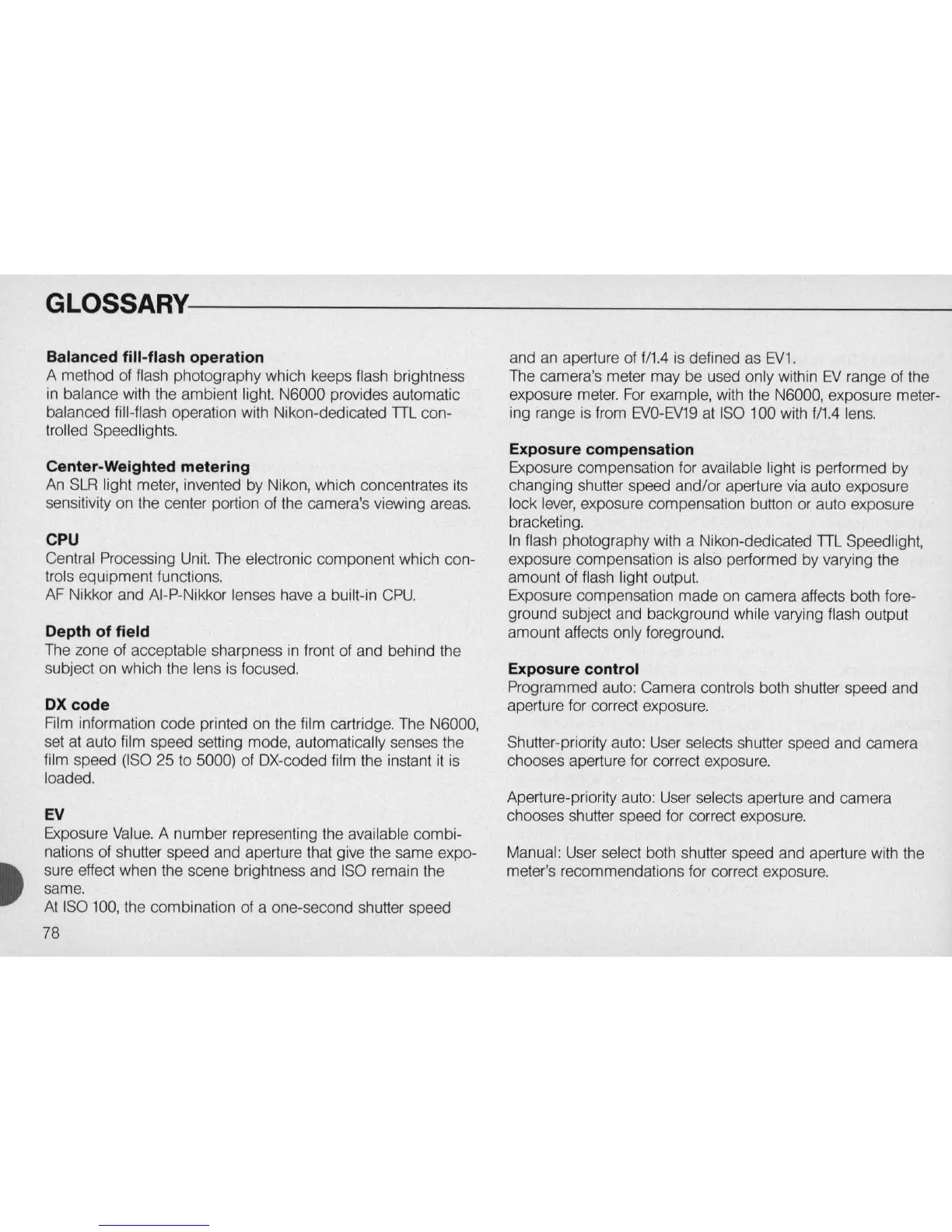 example, with the N6000, exposure meter-