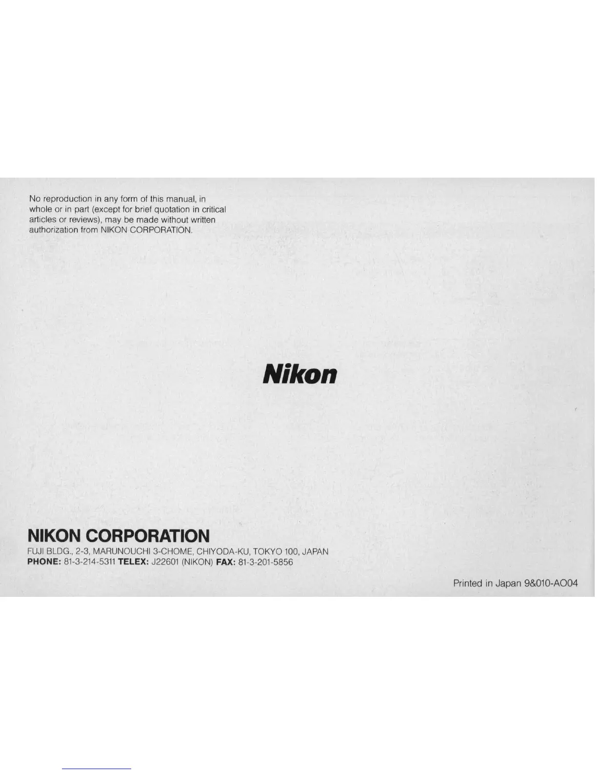 TELEX: J22601 (NIKON) FAX: