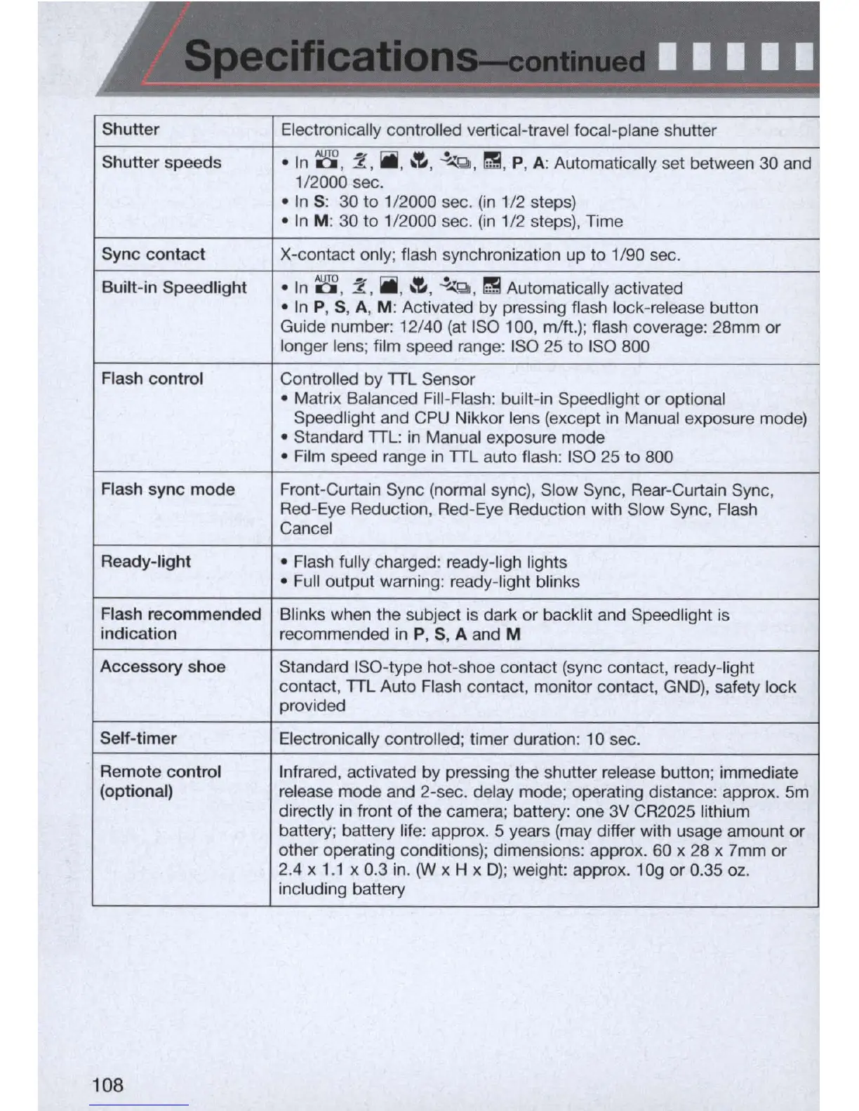 Self-timer Electronically controlled; timer duration: 10 sec.
