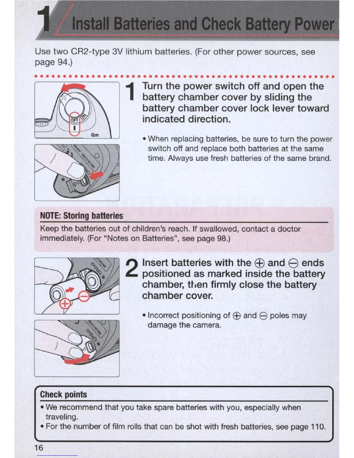 • For the number of film rolls that can be shot with fresh batteries, see page 110.