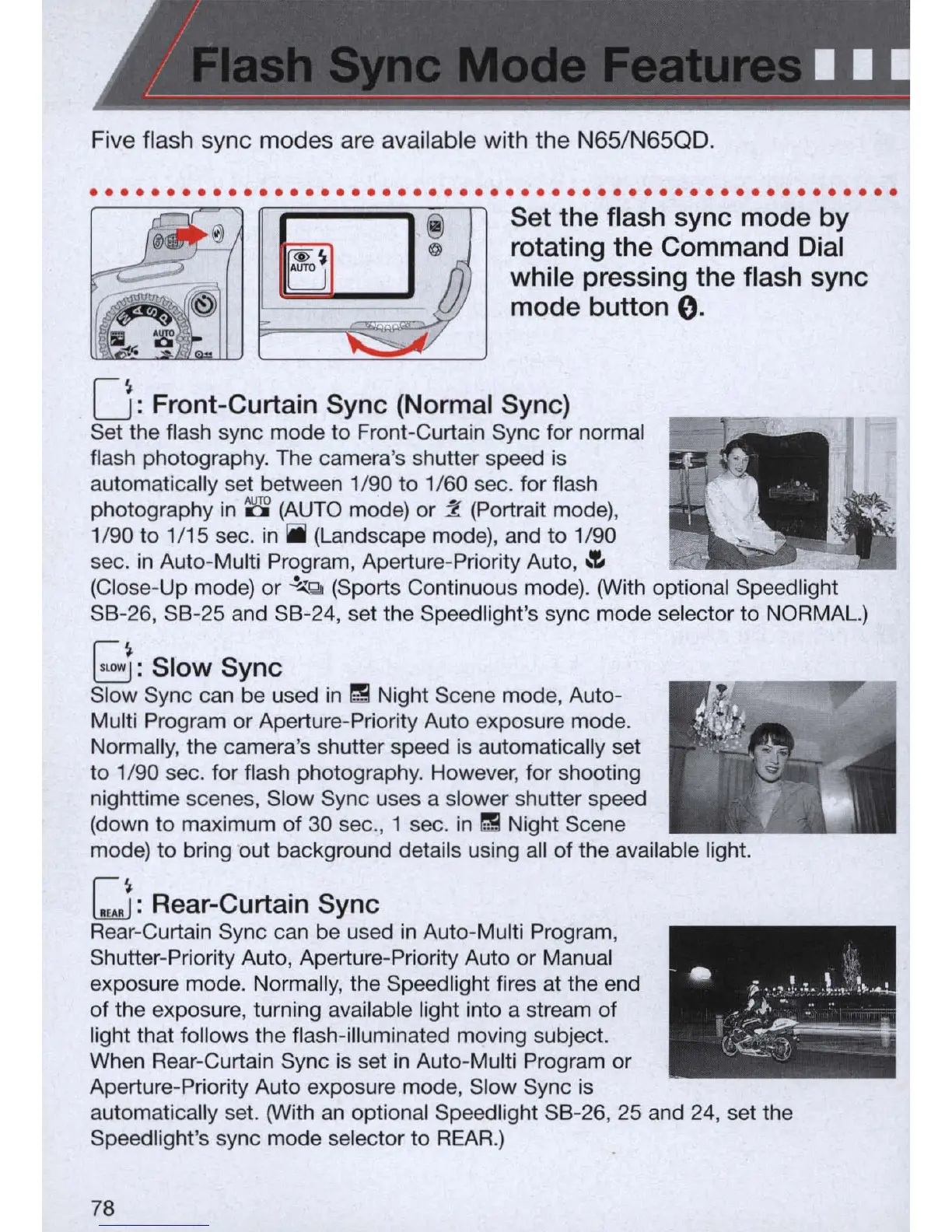 Five flash sync modes are available with the N65/N65QD .