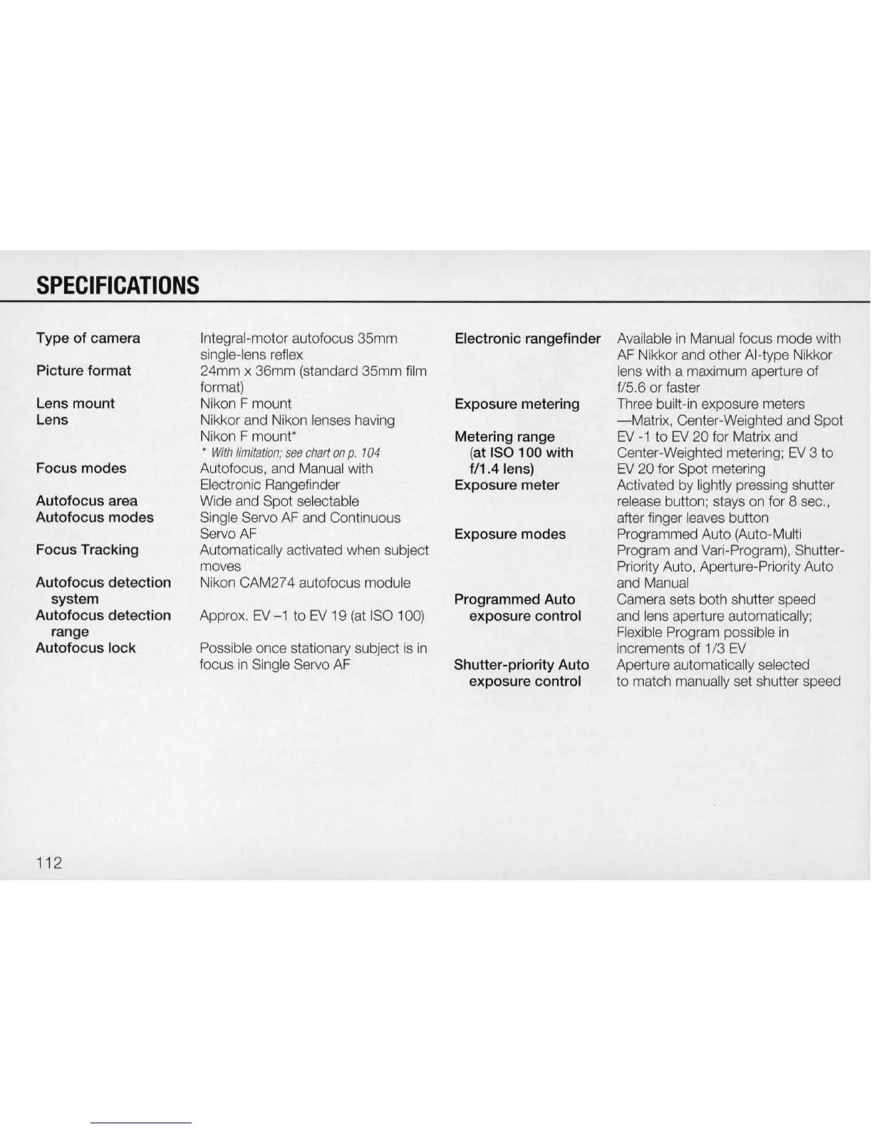 Program and Vari-Program), Shutter-