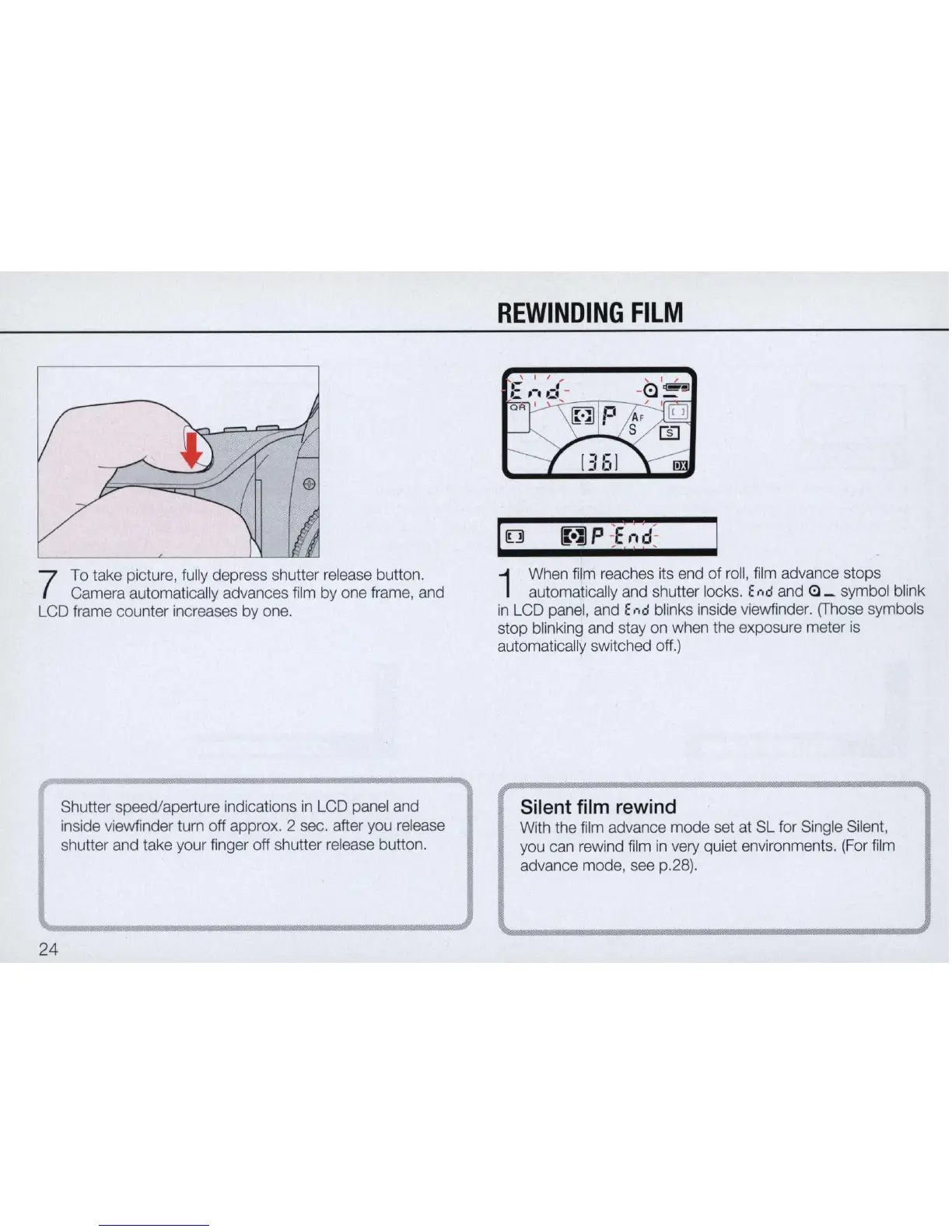 With the film advance mode set at SL for Single Silent,