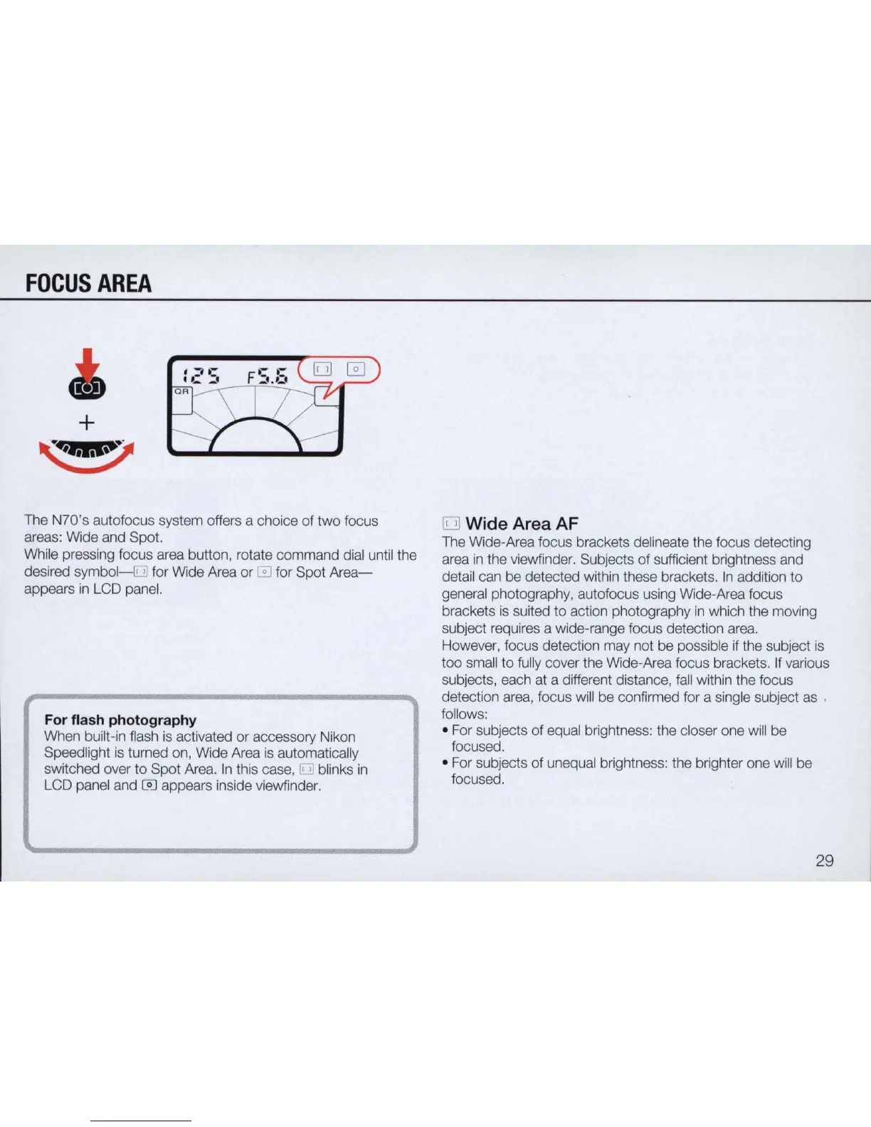 The Wide-Area focus brackets delineate the focus detecting