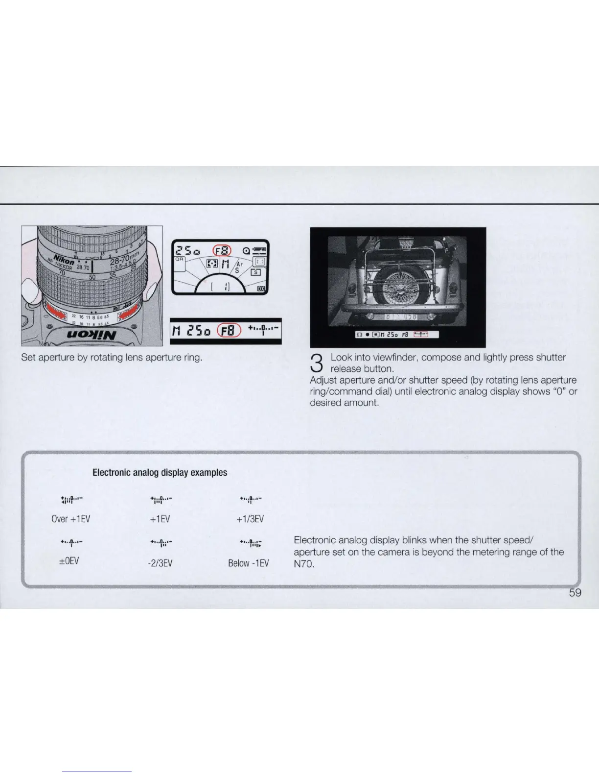 ring/command dial) until electronic analog display shows "0" or