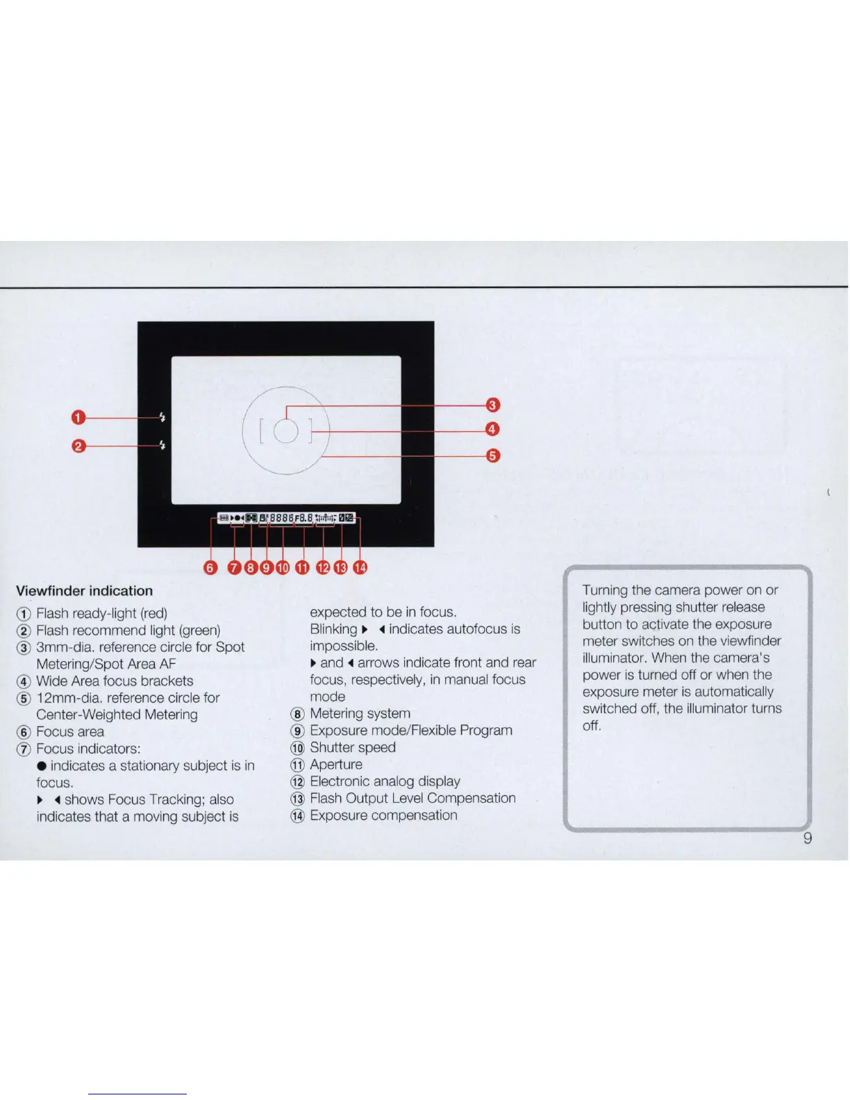 meter switches on the viewfinder