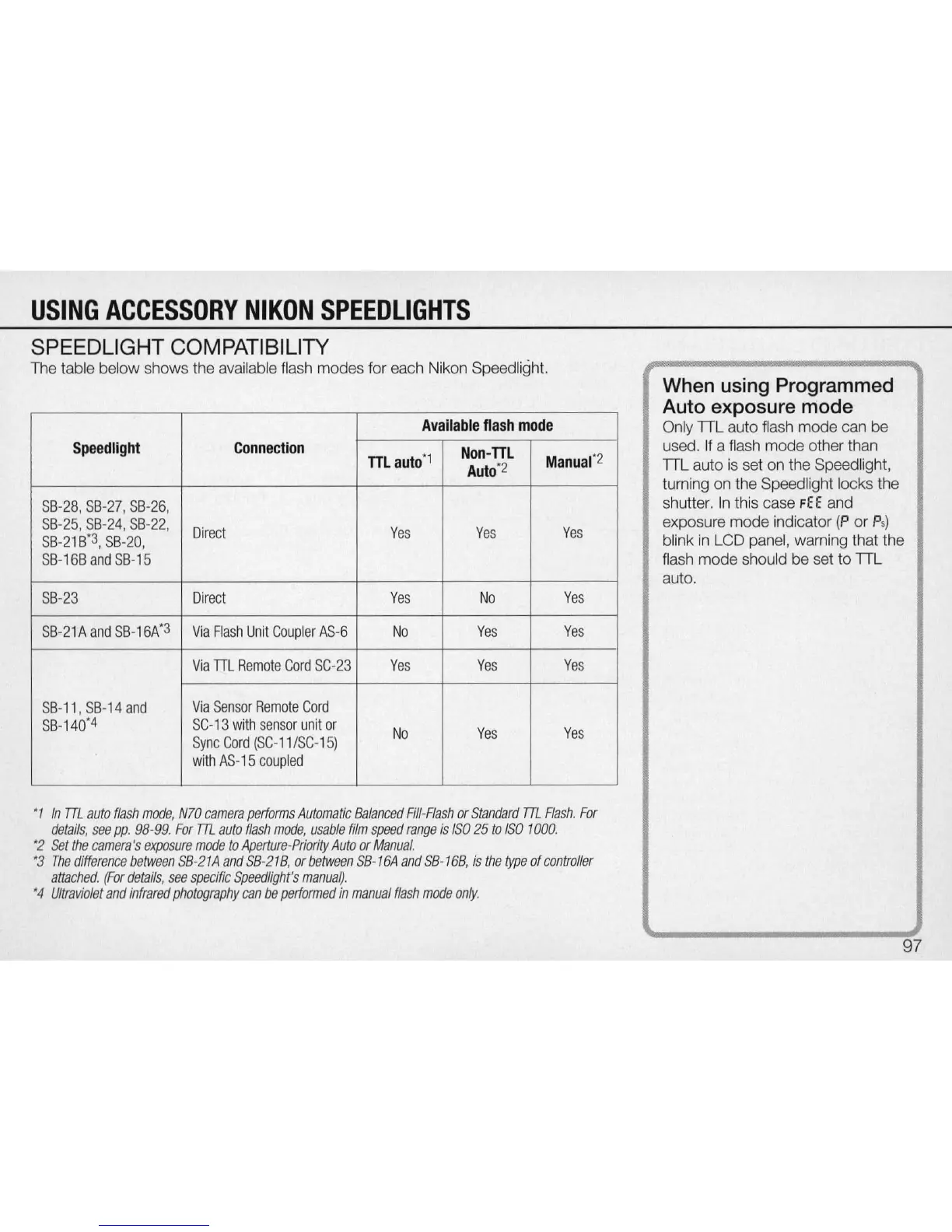 Nikon N70 AF - USING ACCESSORY NIKON SPEEDLIGHTS