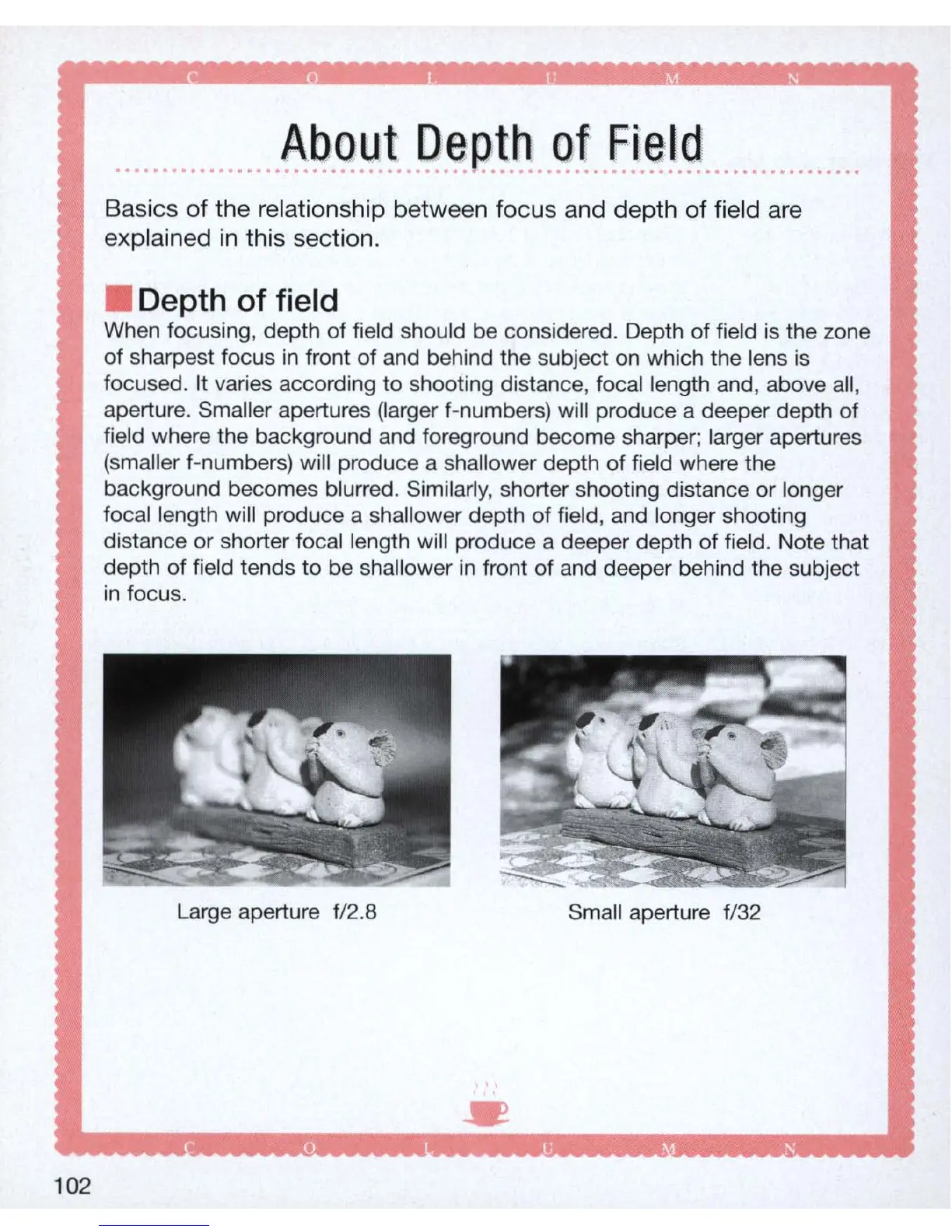 aperture. Smaller apertures (larger f-numbers) will produce a deeper depth of