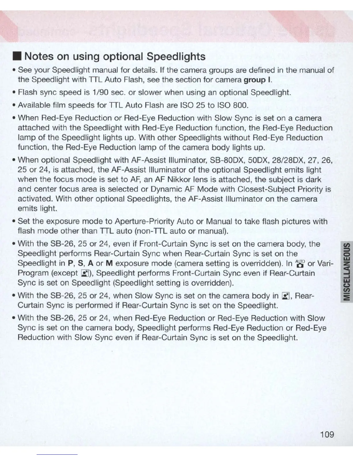 activated. With other optional Speed lights, the AF-Assist