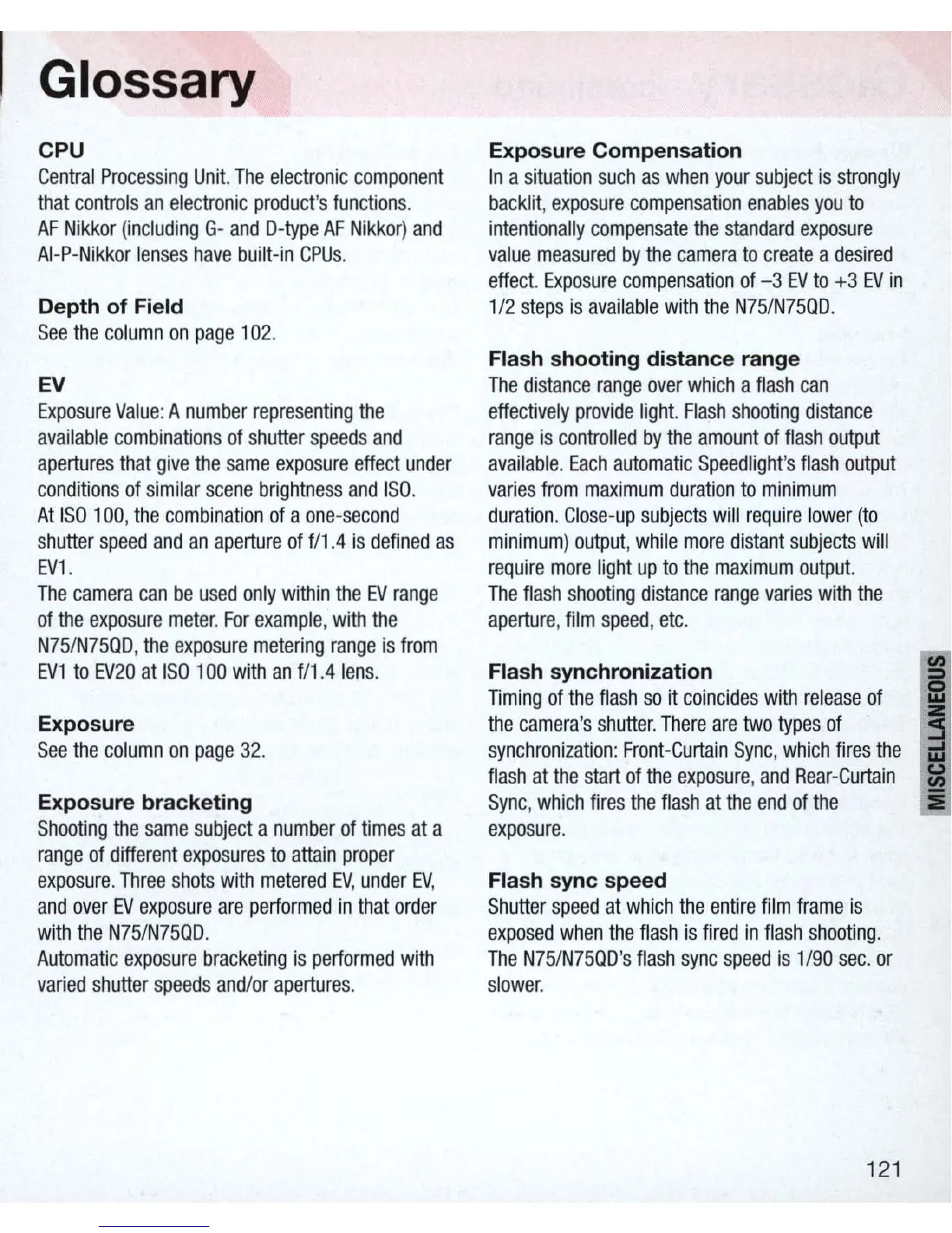 Nikon N75 - Glossary