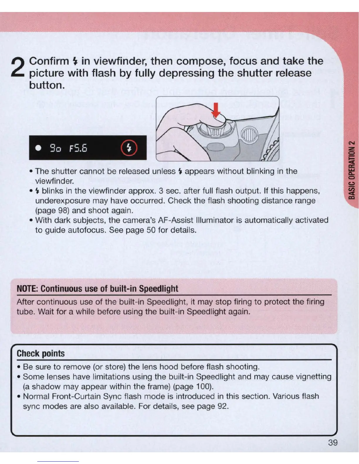 the viewfinder approx. 3 sec. after full flash output. If this happens,