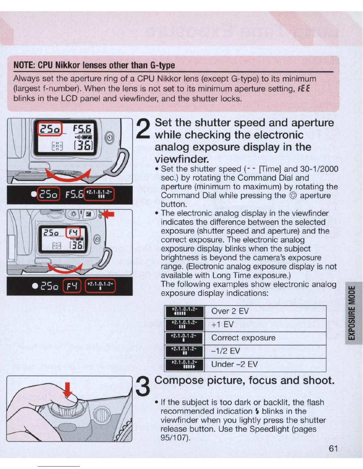 Always set the aperture ring of a CPU Nikkor lens (except G-type) to its minimum