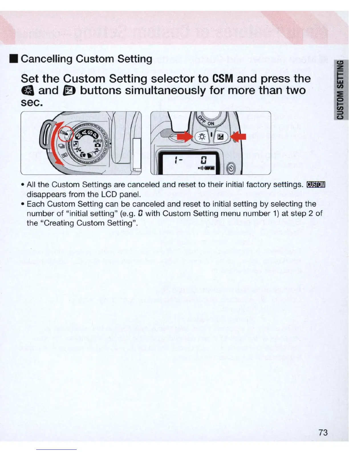 • Each Custom Setting can be canceled and reset to initial setting by selecting the
